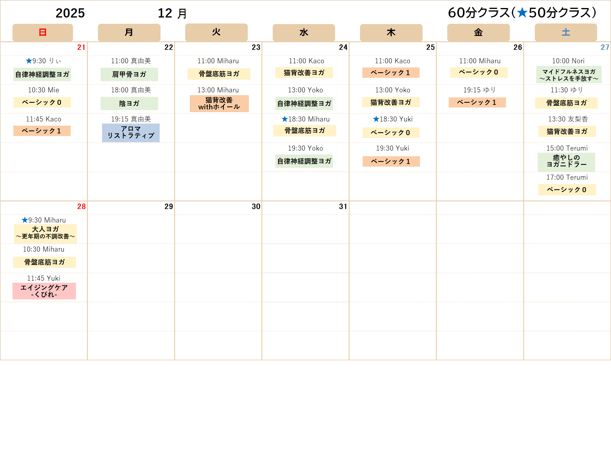 | 自律神経調整ヨガ | ★ | 座位など 100% 立位なし |