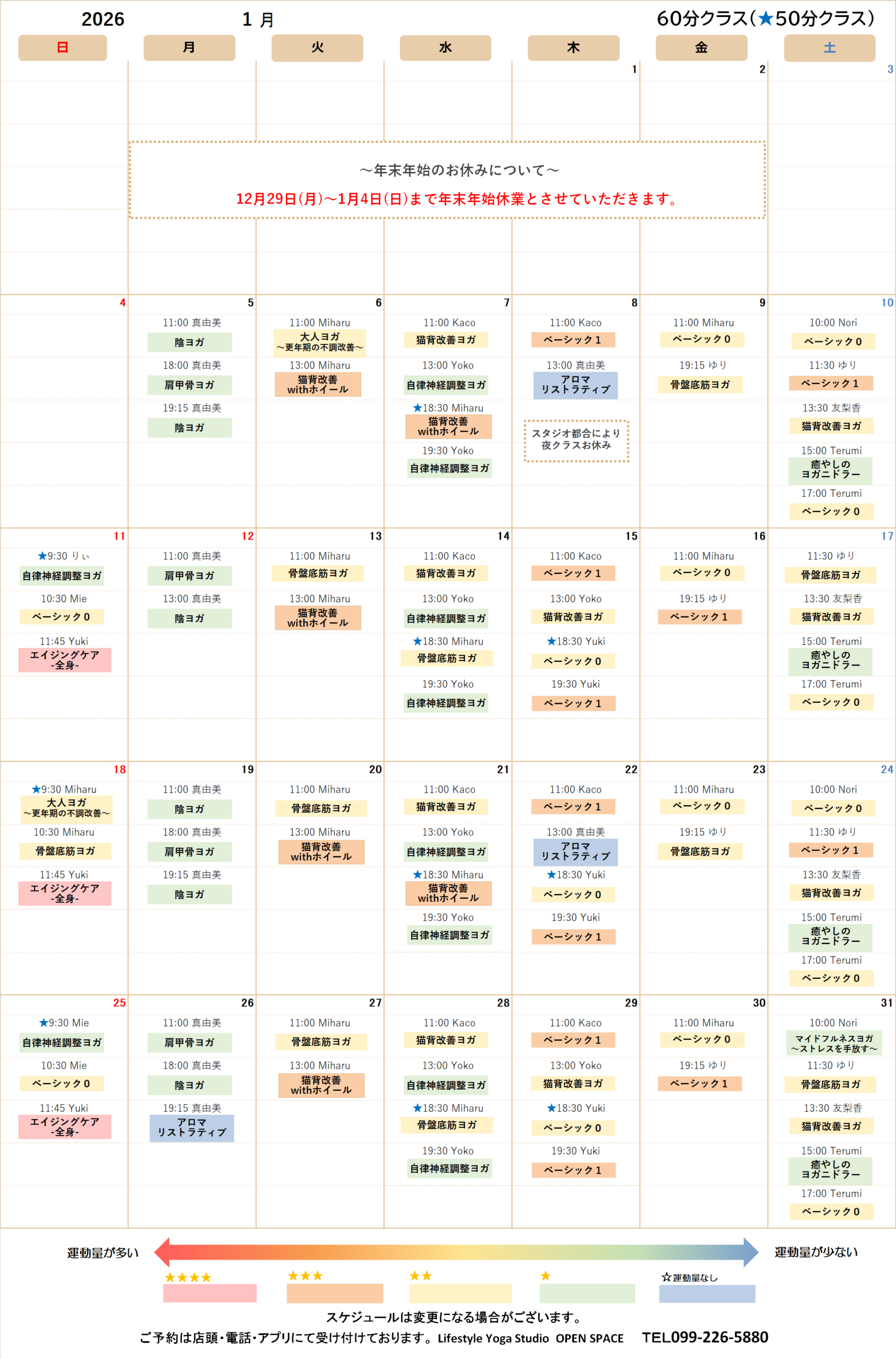 | クラス | 運動量 | アーサナ (ポーズ) 構成 |